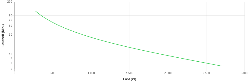 • Laufleistung : ca. 7 Minuten bei 2700W Last